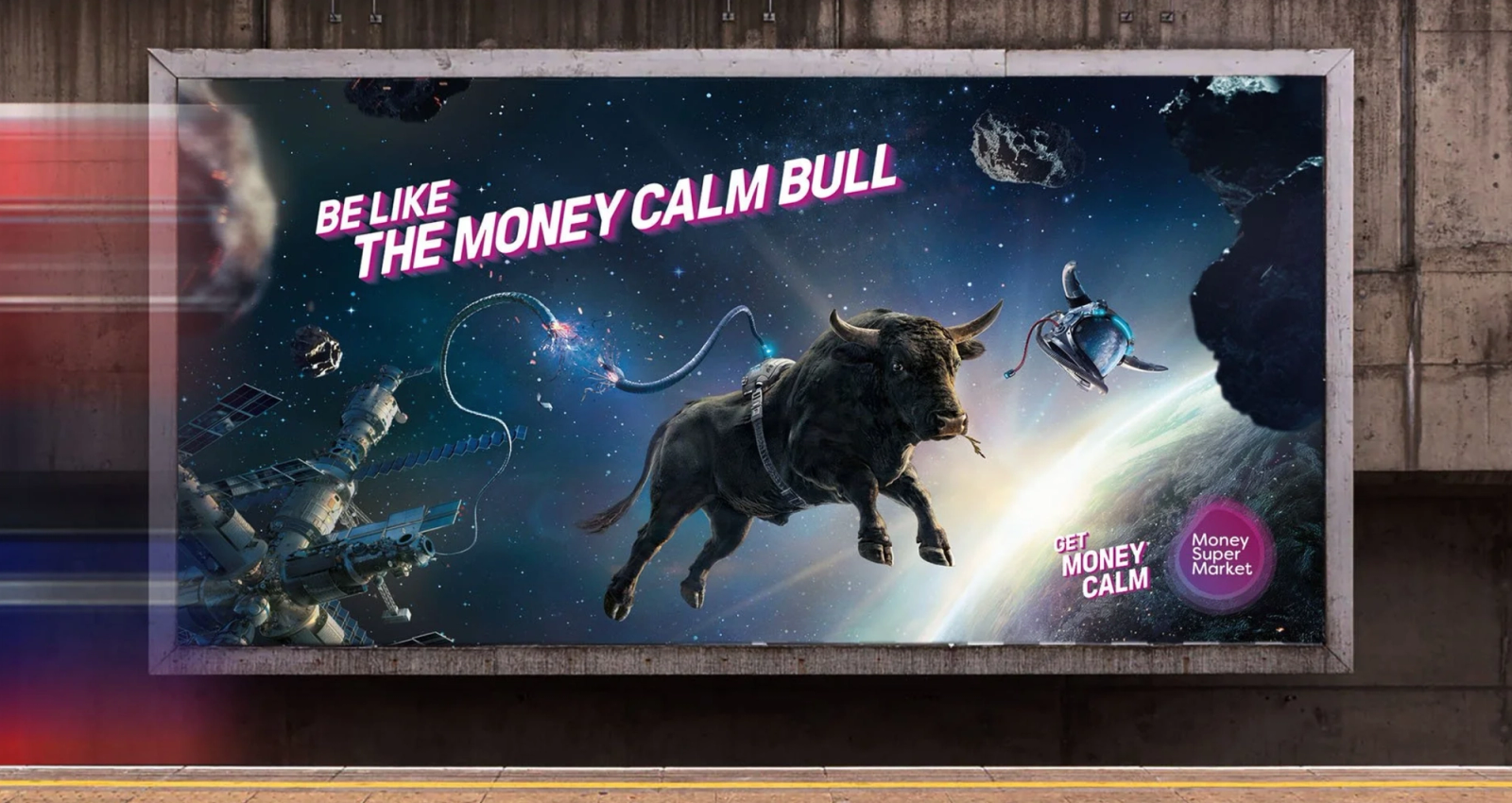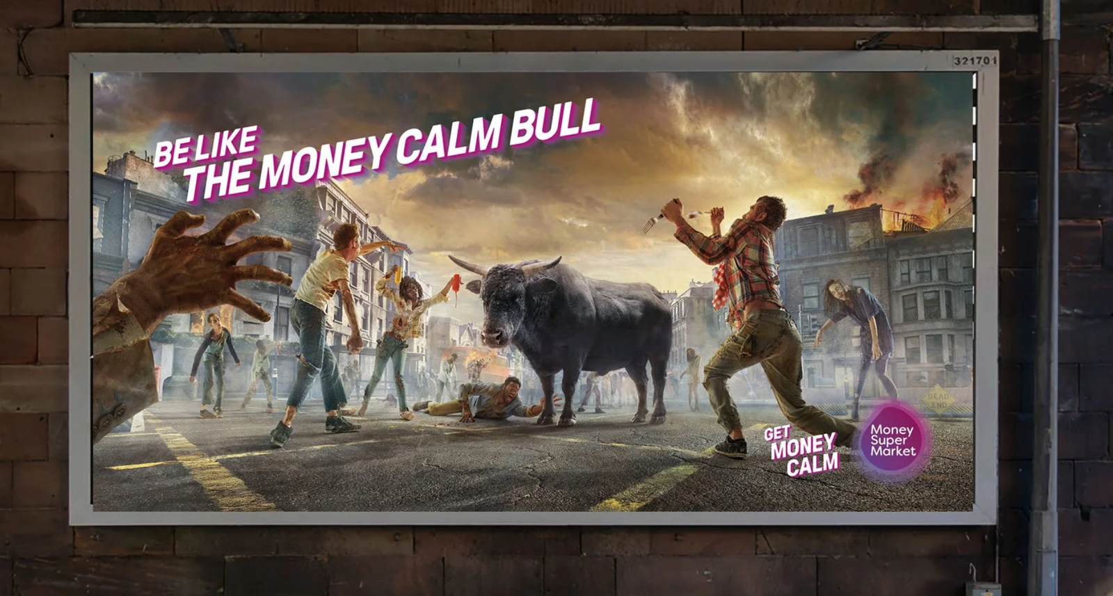 The Money Calm Bull for Money Super Market, is one of the most talked-about campaigns in recent British advertising. A real 2.5-tonne prize-winning bull called Obdulio, with a voiceover from Matt Berry adding deadpan comedy, sauntering through scenarios of escalating chaos without breaking a sweat.